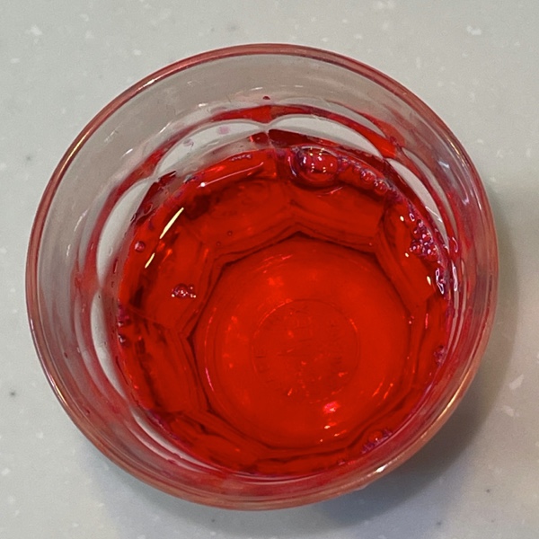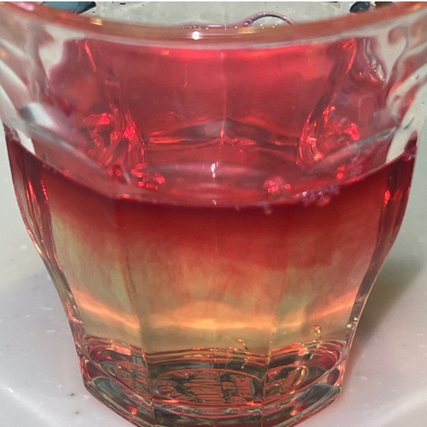 水で割った梅シロップを入れたグラスに、赤しそエキスを少量入れてみます。