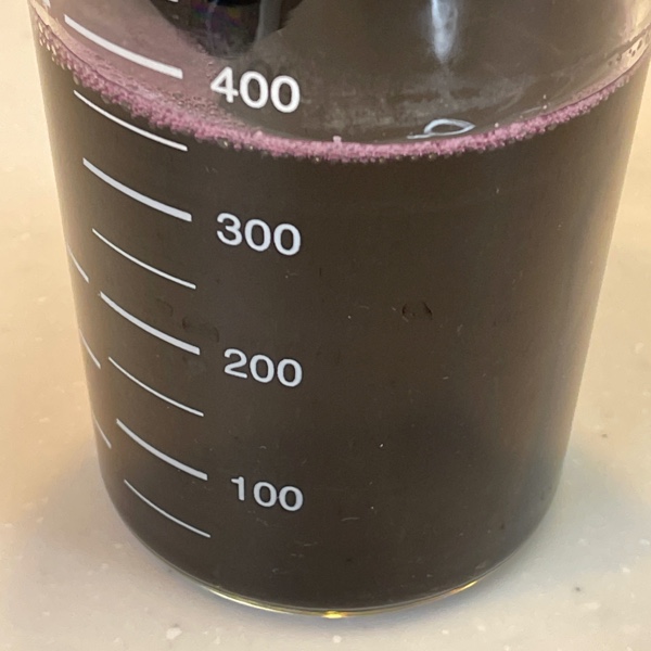 赤しそエキスは赤というより赤黒い液体です。