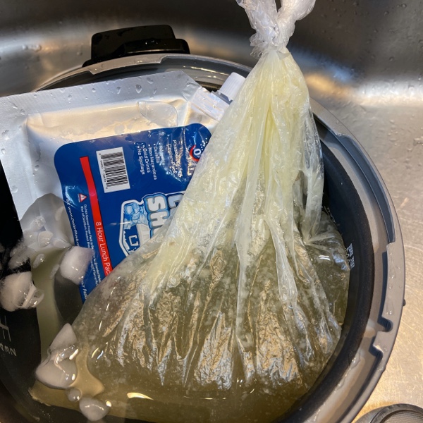 十分に冷めたら、氷や保冷剤を入れて、さらにしっかり冷やします。