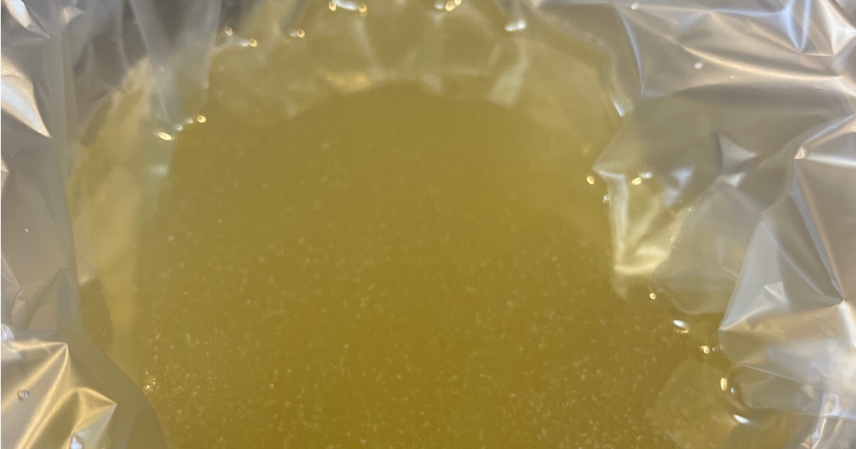 袋の上の方に油が固まって白くなっているのがわかります。
